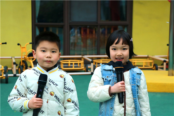 本次升旗仪式主持由大二班的石竞成、陈泊希2位小朋友担任。“尊敬的老师、小朋友们,大家早上好!”伴随着清脆响亮的声音,小主持闪亮登场。他们主持起来有模有样,展现了大班哥哥姐姐的风采。