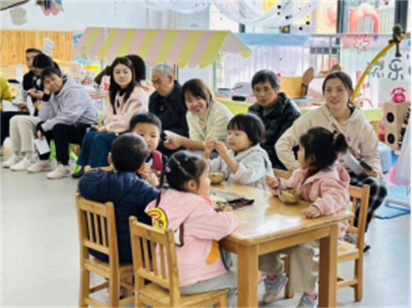 小班的家长观看了餐前消毒和幼儿进餐环节,对幼儿园食品安全管理、科学膳食搭配给予了肯定。
