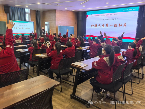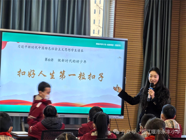 12月10日,都江堰市区域联盟思政教师齐聚都江堰市永丰小学,围绕《扣好人生第一粒扣子》主题,共探思政课堂的育人路径。本次活动采用线上与线下相结合的方式进行。