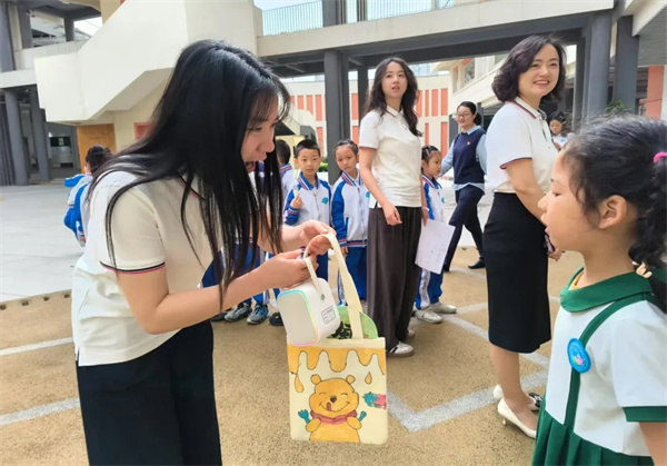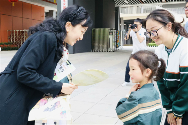 幼儿园小朋友带着精心制作的漆扇和亲手绘制的手提袋,赠予小学的老师和哥哥姐姐,表达对东安湖学校的感谢以及深深的祝福。