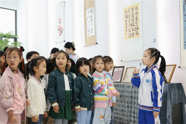 在互动环节,哥哥姐姐们用温暖的笑容和亲切的话语,耐心地带着弟弟妹妹们参观班级教室,介绍班级文化墙面,为弟弟妹妹们答疑解惑。弟弟妹妹们睁着大大的眼睛,认真地倾听着小学的趣事。