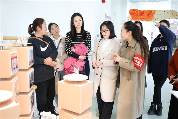 来访团队穿行于幼儿园的班级、廊道、户外等空间,驻足观察“文创坊”“综合体能区”等特色功能区,感叹道:“每一处转角都暗藏教育巧思。”来访团队深入了解园所布局、设施配置等内容,感受自然生态、创新灵动、温馨舒适的教育环境;种植园里萌发的幼苗、饲养角活泼的兔子,生动诠释着“环境即第三位教师”的深刻内涵。双方就空间功能的优化、环境的整体打造等方面展开热烈讨论。
