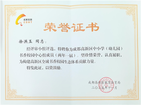 12月10日,成都高新区教育体育局召开书香校园学区牵头校及中心组启动部署会。成都高新区芳草南区小学获评“成都高新区书香校园南站片区牵头校”殊荣;课程开发中心主任徐洪玉被遴选为“高新区书香校园中心组成员”。