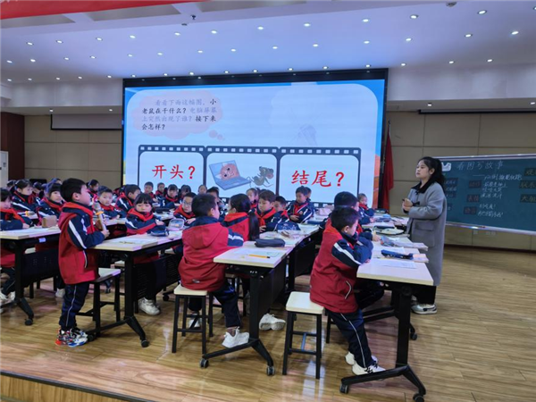 黄文越执教二年级看图写话《猫和老鼠》。刘美林执教三年级文言文《司马光》。
