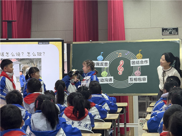 卢美老师聚焦小学低段“相处有道・同伴乐相处”主题,带来了一堂精彩微班会课《从“我”走向“我们”》。课堂以“小音符的成长故事”为载体,通过游戏互动、情景演绎、成长卡书写等丰富形式,引导学生领悟自我反思、主动沟通、互相包容、团结合作的重要意义,让德育教育在潜移默化中扎根生长。