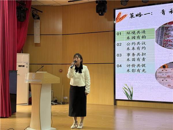 罗文丽老师的治班策略展示《精耕细作,静育青禾》,围绕“青禾班”的班情实际,从规则润禾、课程养禾、携手护禾三大维度,系统呈现了“静育”理念下的班级建设路径,详实的案例、创新的方法和显著的成效赢得了评委的高度认可。