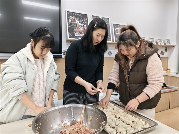 活动中,教职工们分工明确、配合默契,和面、调馅、擀皮、包饺子,现场一派热火朝天的景象。大家纷纷亮出自己的“拿手绝活”,一个个饱含温情的饺子很快堆满了餐盘。期间,大家边包饺子边交流工作与生活中的趣事,拉近了彼此的距离,充分展现了团结协作、积极向上的精神风貌。