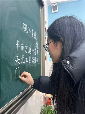 书写比赛涵盖粉笔与硬笔两个项目,老师们凝神静气,在纸上书写规范汉字,在黑板上勾勒工整板书。一笔一画间,不仅展现了扎实的书写功底,更传递出对传统文化的敬畏与传承。此次比赛以赛促练,助力教师夯实教学基本功,为学生树立良好的榜样。