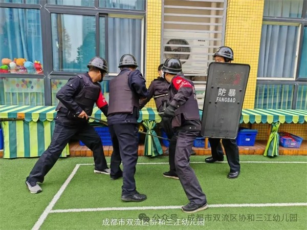 为进一步筑牢校园安全防线,提升安保人员应急处置能力,全力守护师幼生命安全,2025年12月18日,成都市双流区协和三江幼儿园开展了反恐防暴演练暨保安人员业务技能练兵活动。