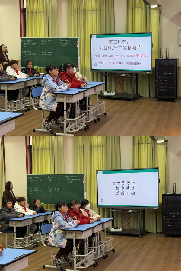 本次诗词大会面向4-6年级学生开展,经过班级初赛的激烈选拔,一批诗词小能手脱颖而出,齐聚决赛现场。比赛在热烈有序的氛围中拉开帷幕,各班选手精神饱满,智囊团成员跃跃欲试,低年级的小观众们更是充满期待。