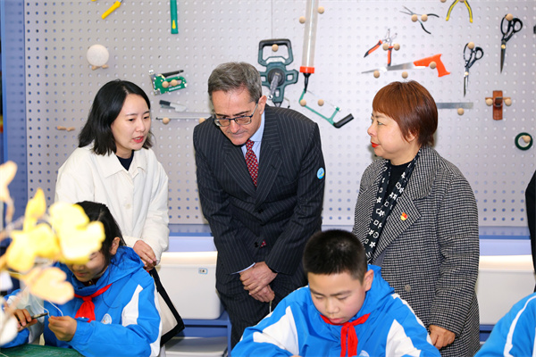 学校党总支书记周英在发言中,进一步阐述了学校“营造影响孩子一生的氛围,促进每一个学生最大可能的发展”的办学追求。她表示,学校通过“吟诵课程”“灯彩课程”“泡家厨房课程”等特色载体,将中华优秀传统文化与现代教育理念深度融合,让学生在体验中成长、在融合中创新。她寄语学生成为“懂文化、爱祖国、通世界”的时代新人,以少年之力助推文明交流、友谊传承。