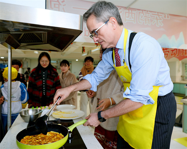 西班牙驻成都总领事白洁路先生以亲切的互动和地道的美食回应了这份热情。他不仅介绍了西班牙饮食文化的多元魅力,更亲自制作并分享了西班牙国菜“土豆煎蛋饼”,以美食的温度促成了两国文化的美好对话。