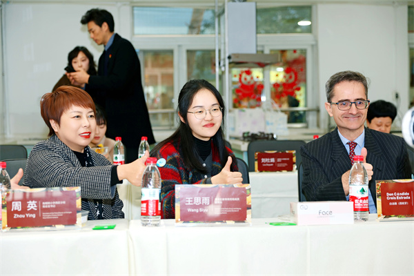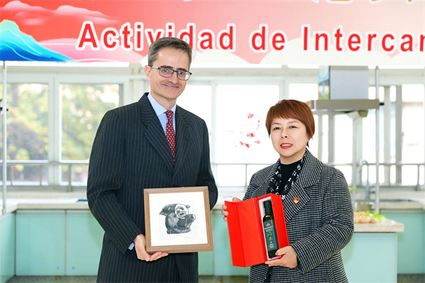 活动尾声,白洁路、王思雨与周英共同为学生颁发“中西文化交流小使者”证书,肯定他们在活动中的积极参与与文化传播贡献。双方互赠具有本国文化特色的礼物,定格了这场跨越山海的文化情谊。