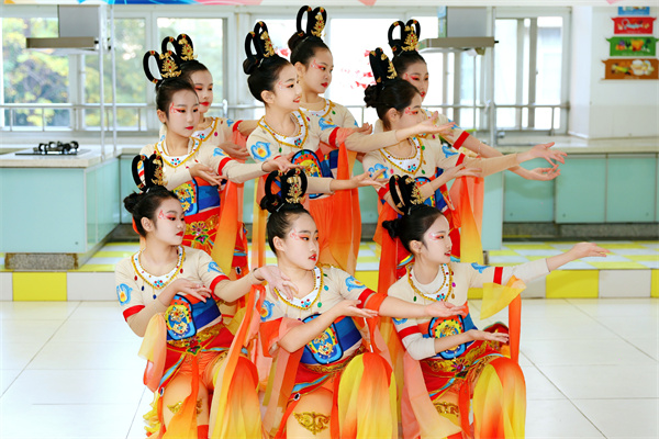 敦煌飞天舞的优美呈现,不仅再现了飞天的飘逸神韵,更以“丝路”为纽带,呼应了千年以来中西文明交流融合的历史。孩子们通过优美的舞姿,传递出开放、交融的文化态度,让远方友人感受到中华艺术“起舞宴嘉宾”的热情待客之道。