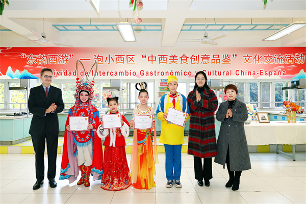 西班牙驻成都总领事馆总领事白洁路先生,青羊区教育局党组成员、副局长王思雨,四川省川菜对外交流促进会副会长杨文静、国际交流部部长官胡蓉,作家冯晖及各界嘉宾与学校师生代表齐聚一堂,以美食为媒、以文化为魂,共同开展了一场深度融合中外文明、生动践行素质教育的实践。