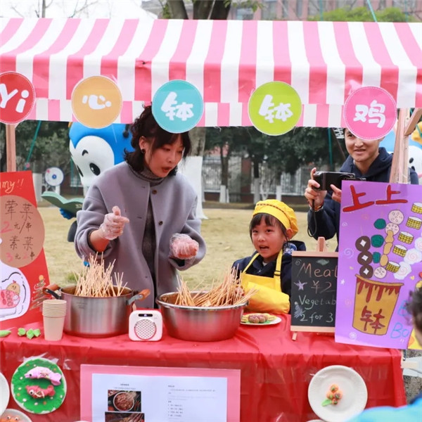 各年级孩子亲手打理的十三个摊位次第开放。