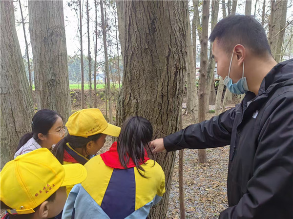还有香樟树清冽的气息,麻柳树舒展的枝条,樱花不知什么时候悄悄在枝头绽放了几朵,抬头望见树梢上“黑鹁儿”安稳的家,孩子们不约而同安静下来。大自然里,每一个生命都在认真地生活呀!