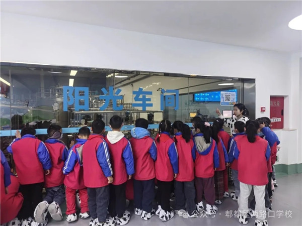 沿着明亮洁净的观光走廊,同学们观看了牛奶生产的全链条。智能机器穿梭忙碌,现代化设备井然有序地运行。一盒盒牛奶在完全封闭的无菌管道中“飞速前行”,经过层层“关卡”,最终包装成型。这场面,比任何动画片都更让人着迷!