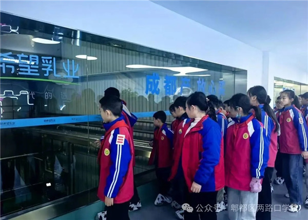 近日,郫都区两路口学校的同学们走出校园,走进新希望乳业智能化透明工厂,开展了一场社会实践课。在这里,同学们用眼睛观察、用耳朵聆听、用心感受,亲眼见证了从“一滴原奶”到“一杯好奶”的现代科技之旅。