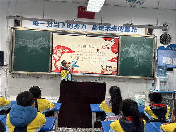 一、二年级的孩子们在班主任或“小老师”的带领下,开展了冬至主题班队会。通过生动有趣的讲解、图片和视频展示,孩子们了解了冬至的由来、气候特点以及“画九”“祭祖”等丰富的文化习俗。童言稚语间,传统知识悄然入心,文化的根脉在启蒙阶段得以滋养。