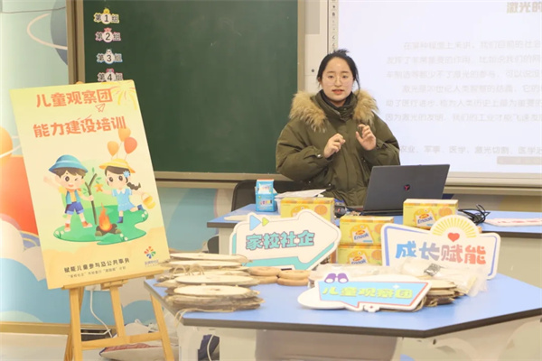 此次活动的顺利开展,离不开三岔街道蓝绸带社区的牵线搭桥与精心统筹。作为家校社协同育人的纽带,社区精准对接资源需求,特邀海目星激光的郝益菲老师走进校园。