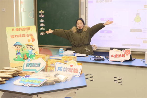 “激光就像一支精准的画笔,能把想象变成现实。”郝益菲的比喻点燃了孩子们的探索热情,互动问答环节里,好奇的小手此起彼伏,思维的火花在课堂中碰撞。