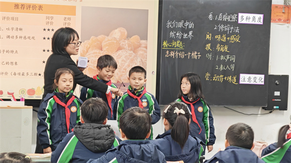 课后,区教研员晋桔老师对本节课给予高度评价与充分肯定,点赞这是一节充满欢笑和儿童感的“橘味”课堂。同时,也结合教材的编排提出针对性优化建议。