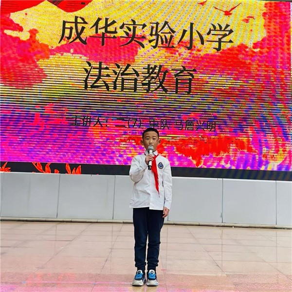 主题活动展示之后,二(7)中队马詹兴明同学进行了主题鲜明的法治教育宣讲,将法治意识的种子播撒在同学们心间,提醒大家遵纪守法、明辨是非,在阳光下健康成长。