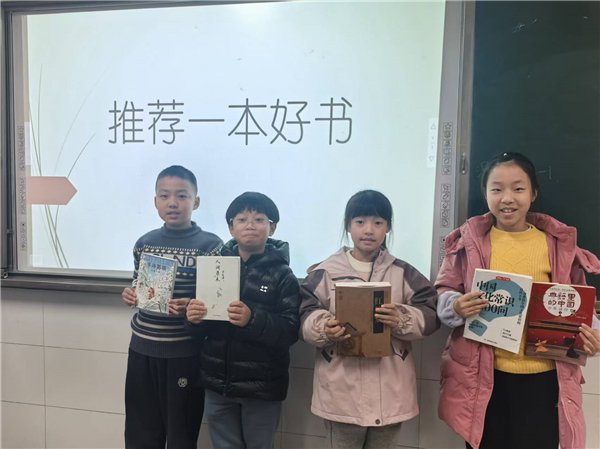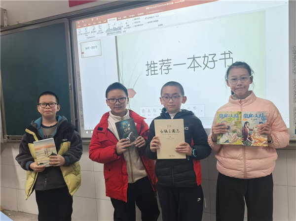 班级好书推荐会率先拉开帷幕。同学们化身“小小荐书官”,自信地走上讲台,分享心仪书籍的精彩片段,畅谈书中鲜活的人物形象与真切的阅读感悟。一本本好书在分享中流转传递,其中《典籍里的中国》以厚重的文化底蕴唤起同学们对民族文化的深刻认同与自信;《人间草木》则引导大家于平凡日常里,发现美好、汲取温暖与韧性。