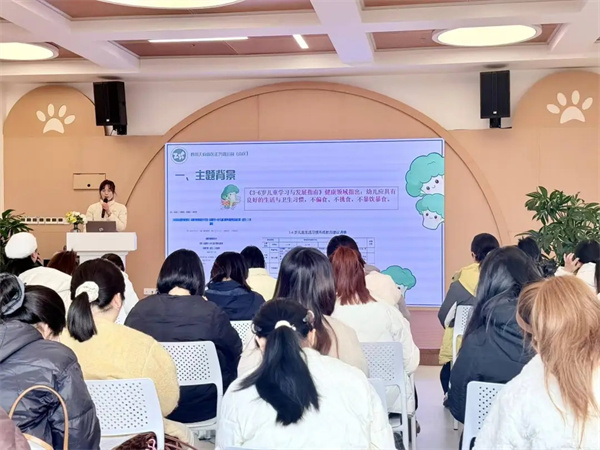 正兴幼儿园(南区)生活教研组组长兰晴老师,则以《幼儿健康饮食行为养成的园本实践探索》为主题,从园内健康饮食教育中存在的实际问题、教研组的研讨历程与优化策略、实践带来的成长与收获等方面,系统介绍了园本教研的推进路径与丰硕成果。其条理清晰的分享,充分展现了园本教研对幼儿习惯养成教育的系统性支撑作用,为各园所开展相关教研工作提供了清晰思路与有力借鉴。