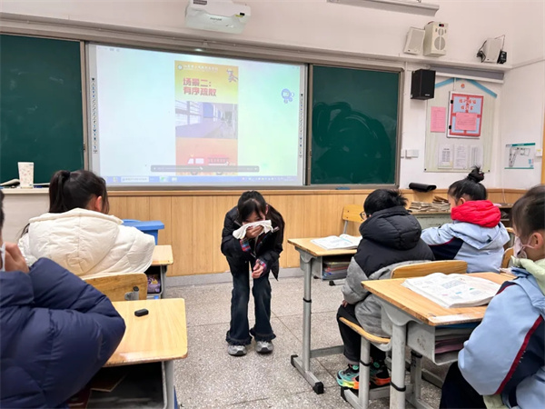 演练前夕,老师们化身“安全讲师”,针对低年级孩子的身心特性,量身定制了一系列趣味横生的消防安全专题培训。从校园内潜藏的火灾隐患,到逃生路线的精准识别,再到湿毛巾捂口鼻、弯腰低姿前行的标准动作,老师们通过动画演示、趣味问答、动作模仿等多样化教学手段,寓教于乐,确保每个孩子都能听得懂、学得会、记得牢。