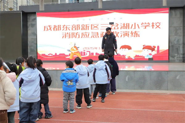 为进一步强化校园消防安全防线,全面提升低年级师生的应急避险与自救互救能力,成都东部新区三岔湖小学校于2025年12月23日特别为1—3年级学生精心策划并成功举办了一场消防应急演练。本次演练严格遵循“安全第一、预防为先、教育为本”的工作方针,紧密贴合低龄学生的认知特点,细心设计演练流程,确保安全知识真正入脑入心。