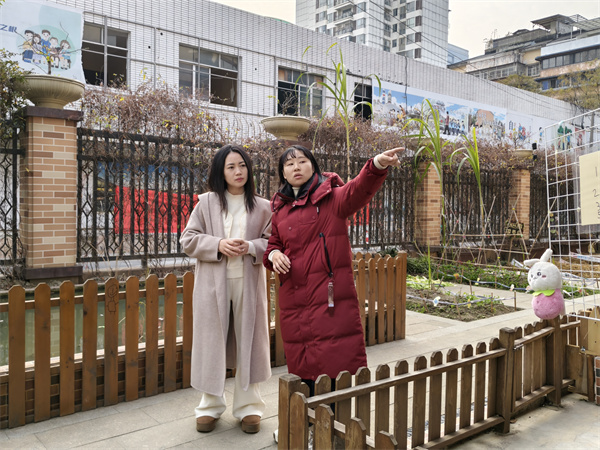 活动落幕后,在五幼浣花业务园长刘思园老师的陪同下,汤茂琪实地走访了幼儿园的幼儿活动区、班级环境、功能室等核心空间。参观过程中,她详细了解了园所结合膳食活动打造的沉浸式教育场景,在幼儿活动区驻足停留,仔细观察环境创设中融入的幼儿自主探索元素,并不时与刘思园深入交流探讨,共同探寻通过环境打造落实“以幼儿为中心”教育理念的有效路径。