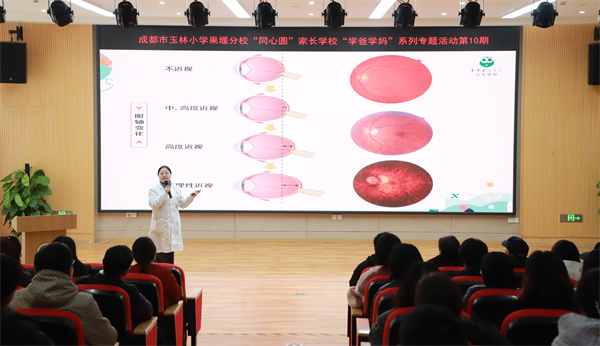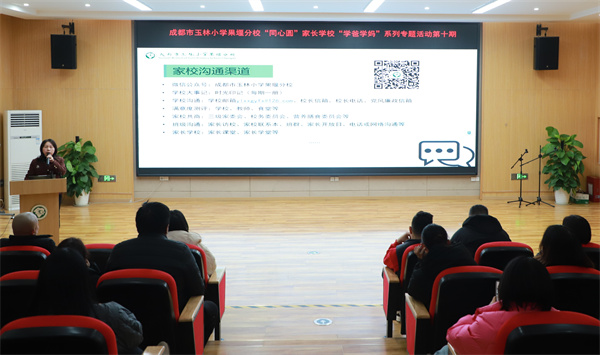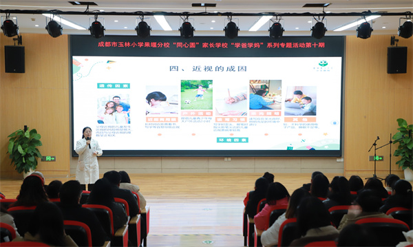 为构建家校协同育人的良好生态,共同守护孩子健康成长,成都市玉林小学果堰分校“同心圆”家长学校“学爸学妈”系列专题讲座第十期于2025年12月24-25日下午如期举行。本期讲座围绕一年级家长普遍关心的儿童视力保护、校园安全、食堂管理及家校协作等议题,为家长带来了内容充实、实用性强的高质量分享。