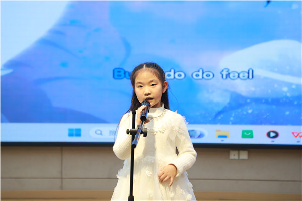 三年级的哥哥姐姐们则凭借稳定的唱功让人眼前一亮,娴熟流畅的英语表达、饱满真挚的情感流露,让歌曲内涵与语言魅力展现得淋漓尽致。互动环节,孩子们与台下观众一起拍手应和,将现场氛围一次次推向高潮。