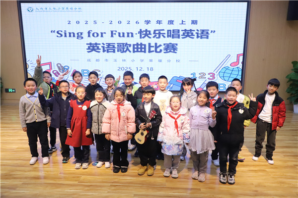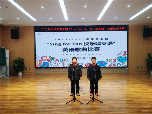 当英语的韵律邂逅童真活力,当舞台灯光照亮自信脸庞,一场别开生面的语言展演在成都市玉林小学果堰分校拉开序幕!12月19日,备受期待的“Sing for Fun”英语歌曲比赛盛大开启。本次活动围绕“快乐唱英语”主题展开,旨在引导学生在优美旋律中体会英语的韵律之美,在舞台上勇敢展示自我,让语言学习变身成一段充满乐趣的体验。