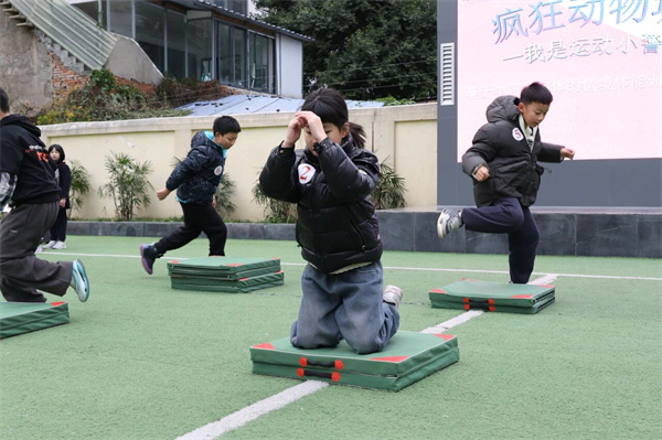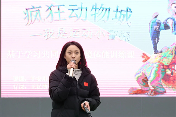 于安琪老师围绕“疯狂动物城—我是运动小警察”课例阐述沉浸式情境教学设计。王钇博老师执教这堂趣味体能课,8个动物主题技能站让学生在分组协作挑战中“玩中学、练中长”;锻炼体能的同时涵养品德。