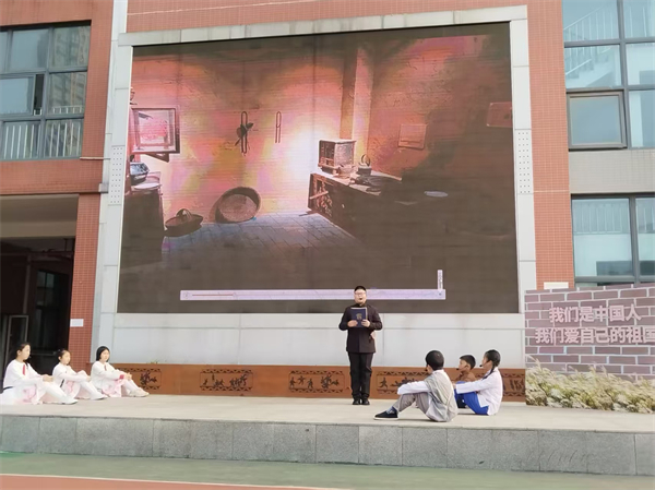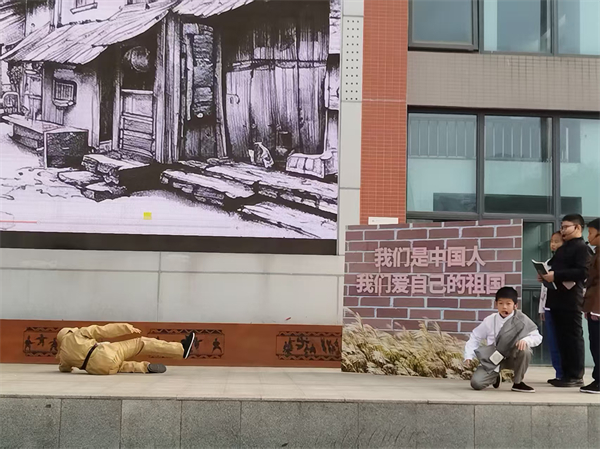 五、六年级的活动更是精彩纷呈,同学们以课本剧形式演绎《小英雄雨来》,化身剧中角色穿越时空,用生动的台词、传神的动作重现雨来的英雄事迹。当“雨来”与敌人周旋的情节上演,台下观众仿佛置身故事之中,既感受到文字的力量,也加深了对红色文化的理解。这场课本剧的演绎,不仅是一次艺术的呈现,更是对经典文化的传承与弘扬。
