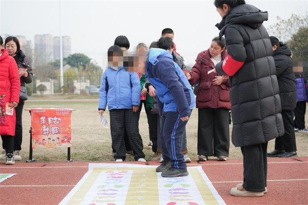 游戏区是活动的“欢乐主场”,10个特色游戏同步展开,处处洋溢着孩子们的笑声与欢声。在“欢乐套圈”摊位前,孩子们全神贯注地瞄准目标,轻轻抛出手中的圈;在“团体运球”场地里,大家在奔跑与协作中感受运动的快乐;“纸杯夹夹乐”则考验孩子们的耐心与协调性,他们小心翼翼地用夹子夹起纸杯,赢得周围阵阵欢呼。每个游戏摊位都由教师和家长志愿者组织引导,他们详细讲解规则,记录成绩,并为完成挑战的孩子盖上印章。