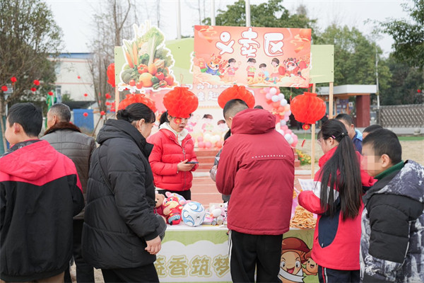 活动当天,校园里到处张灯结彩、灯笼高挂,呈现出一派喜气洋洋的景象。义卖区的摊位前人头攒动,玩具、玩偶、手工作品等物品琳琅满目。在家长和老师的协助下,孩子们用稚嫩的声音与老师讨价还价、购买心仪的物品,不仅有效锻炼了学生的社会交往能力,还进行了一次生动的爱心教育。