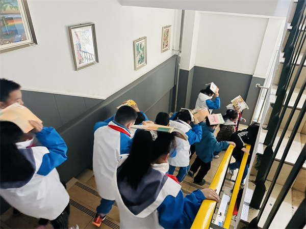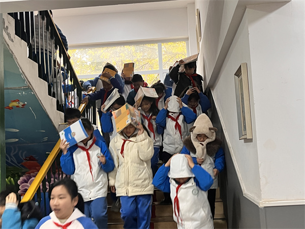 约2分钟后,广播中传来“开始疏散”的指令,各班级班主任和配班老师立即起身,引导学生按照预定疏散路线,保持“弯腰、护头、靠右行”的姿势,快速有序地向操场方向疏散。疏散过程中,老师们全程把控秩序,及时提醒学生不要推搡、不要慌乱,确保每一名学生都能安全快速通过疏散通道。