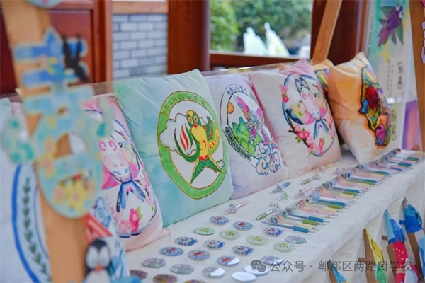 静态展区宛如一片“会说话的风筝天空”。这里陈列着学生亲手绘制和制作的风筝作品、环保立体摆件、航天主题模型及系列文创。每一笔色彩、每一个结构,都承载着孩子们的梦想、情感与创造。展区以物传情,以艺载道,让观者在视觉之美中,触摸学校“五育融合”的育人温度。