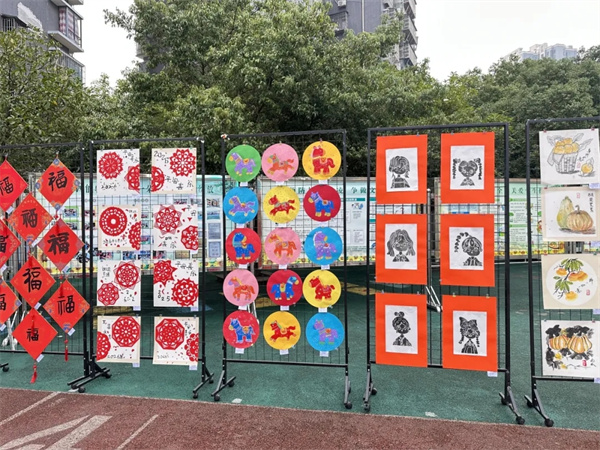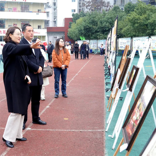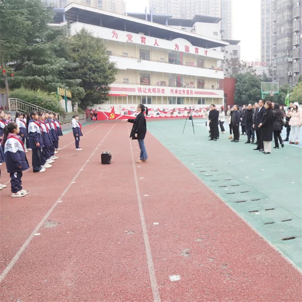 在大竹六小党支部书记周红军陪同下,李雪梅一行参观了校园,驻足文化墙细览办学理念,观看学生舞蹈社团新疆舞展演,欣赏师生书法绘画作品等,直观了解该校“五育融合”的校本课程体系与文化浸润成效。