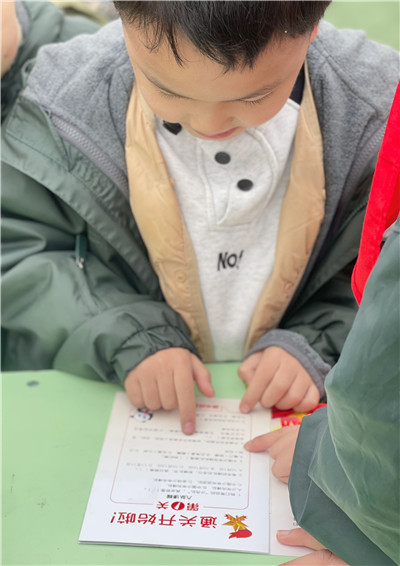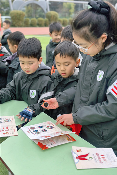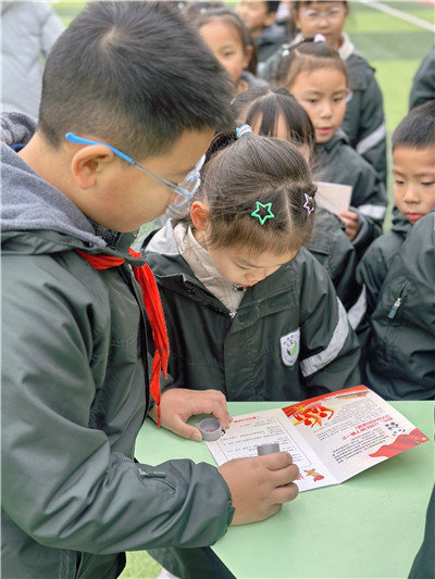 大队委当“智慧领航员”,拿着闯关卡出题,萌娃们眼睛亮闪闪,踊跃答题,每答对一题,心里就多一颗红色小种子。