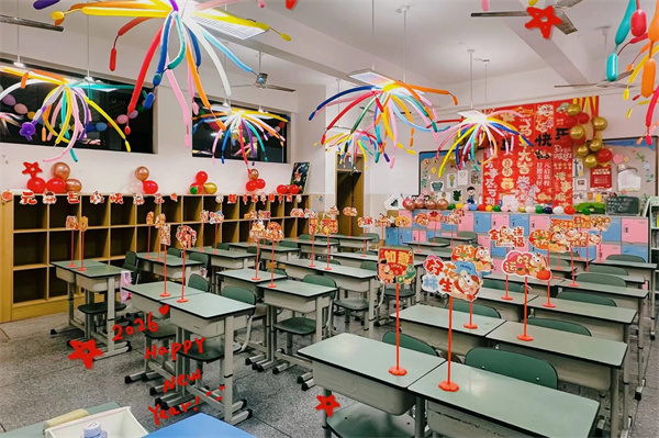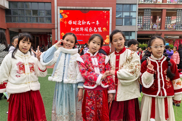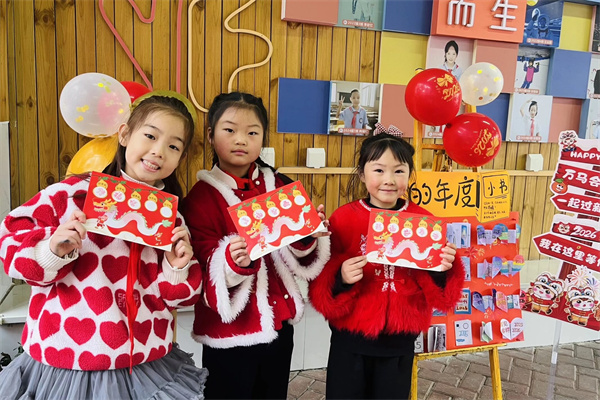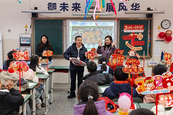 红灯笼高高挂起,福卡上印满期许,校园里处处洋溢着辞旧迎新的喜悦。身着红色服饰、汉服的孩子们,如同移动的“新年符号”,为校园增添了浓浓的节日氛围;“学校的特派祝福小分队”走进各班教室,将定制礼物与新年祝福送到每一个孩子手中,让温暖与期许萦绕心间。
