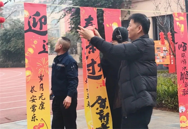 师生与家长携手扮靓校园,贴窗花、串灯笼、吹气球,处处洋溢着甜甜的年味。校长和老师们化身“送福使者”,为孩子们送上礼物并合影留念,温暖的互动让自信的种子在孩子心中扎根。