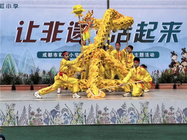 12月31日,成都市彩虹小学以“让非遗·活起来”为主题,隆重举办2026年彩虹非遗文化节暨跨学科实践活动。成都市青羊区非物质文化遗产保护协会詹丽英秘书长、文翁社区党委书记黄丹、青羊区教育局徳体卫艺科毛晓璐老师以及青羊区教科院科研教研员曹艳老师等相关领导、专家莅临现场,与全校师生共同见证了一场融合传承、体验与创新的校园文化盛会。