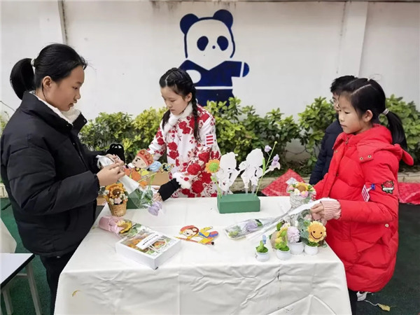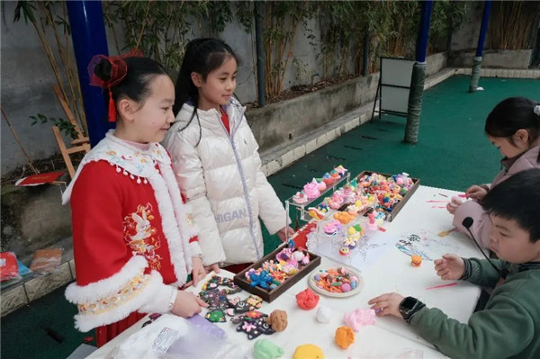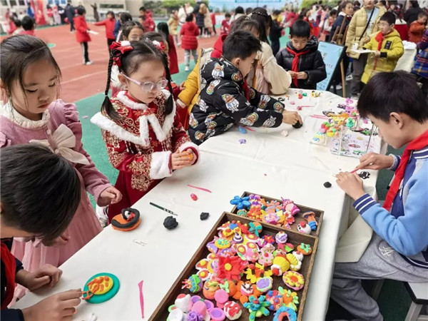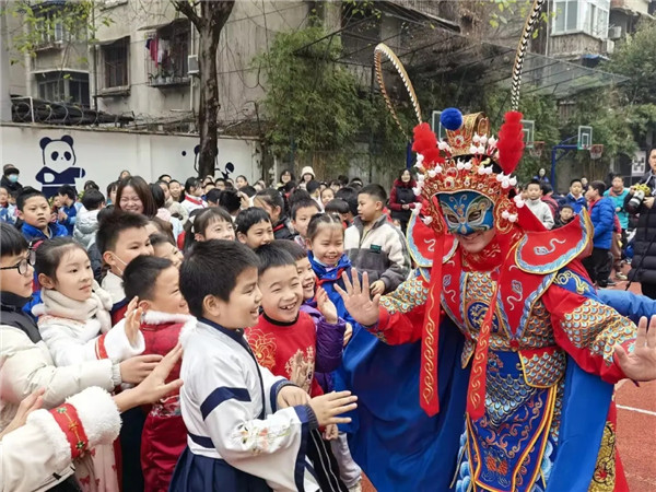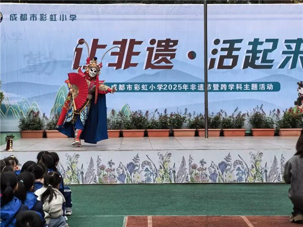 开幕式上,一系列由师生共创的节目精彩上演。六年级舞龙队以《龙腾盛世》精彩开场,气势昂扬;一年级萌娃表演的《萌新贺岁》,天真烂漫,喜气洋洋;三年级的舞蹈《面塑·活起来》,将静态的指尖艺术变成了动态的舞台表演,让人耳目一新。非遗传承人曾宇珂老师带来的川剧变脸与吐火表演,更将全场气氛推向高潮,传统技艺不朽魅力赢得全校师生阵阵掌声。