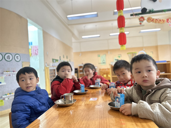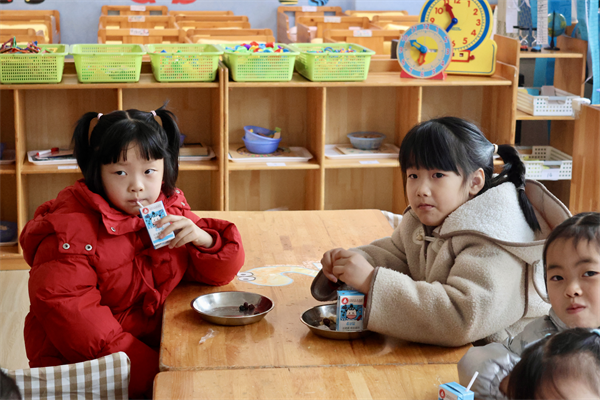 观影过程中,小眼睛认真地盯着屏幕,随着剧情的发展,孩子们时而感叹,时而欢呼,看到开心的场景笑声连连。与此同时,营养的坚果和浓郁的牛奶为这场聚会注入了温馨的甘美。大家享用着可口餐点,观看着动人的电影,在惬意欢喜的气氛中,一同等候新年晨光的来临。