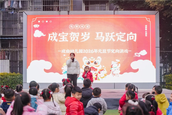 2026年元旦,四川天府新区成南幼儿园内洋溢着浓浓的节日氛围,一场别具一格的儿童定向游戏为孩子们带来了充满童趣与挑战的新年盛宴。uyn四川教育在线-四川教育讯息